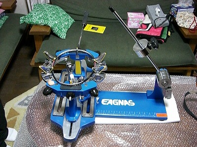 ということで、廉価の魅力には勝てず、また、ガット張りの技術ならば、手張りで20数年磨いてきた技があるので、機械でも、慣れれば大丈夫であろうということで、分銅式を買うことにいたしました。